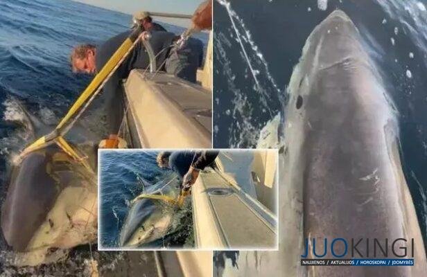 Didžiausias kada nors Atlante užfiksuotas baltasis ryklys vėl pasirodė netoli Kanados krantų – čia jis...