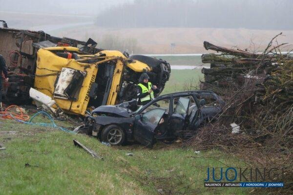 PlačiauKraupi avarija: susidūrė automobilis ir sunkvežimis: vyras žuvo, keleivė mirė ligoninėje