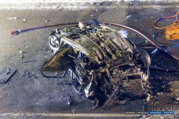 Vilniuje baisi tragedija: apsivertus automobiliui ir kilus gaisrui sudegė žmogus