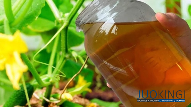 Šiuo tirpalu periodiškai apipurkškite agurkų lapus ir palaistykite augalus prie šaknų.