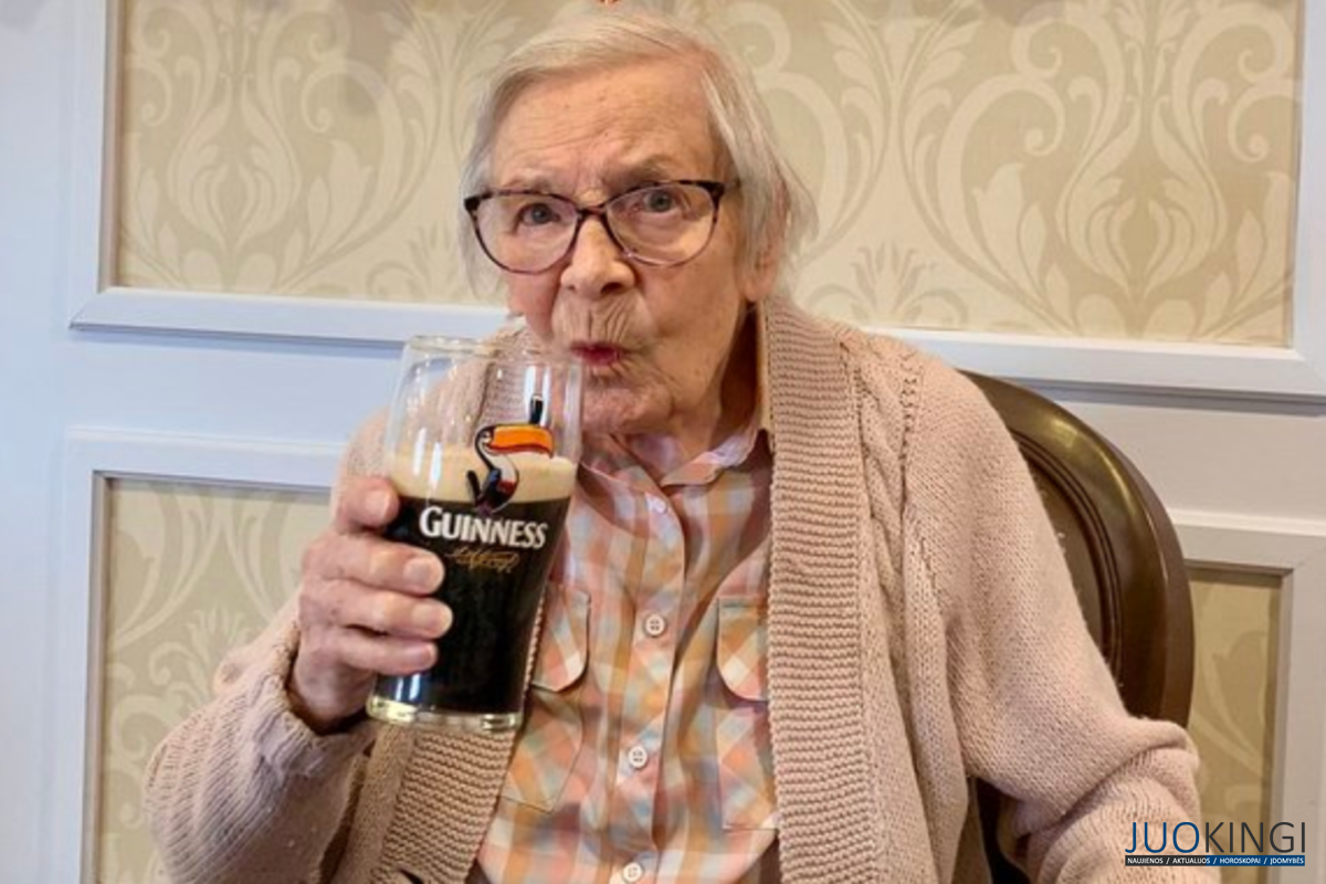 105-ojo gimtadienio proga senelių globos namų darbuotojai jai surengė linksmą vakarėlį. Moteris gavo krepšį „Guinness“ alaus, virtuvinę prijuostę, šlepetes, šokolado ir garsiojo „Guinness“ juodojo alaus, pranešė globos namai.