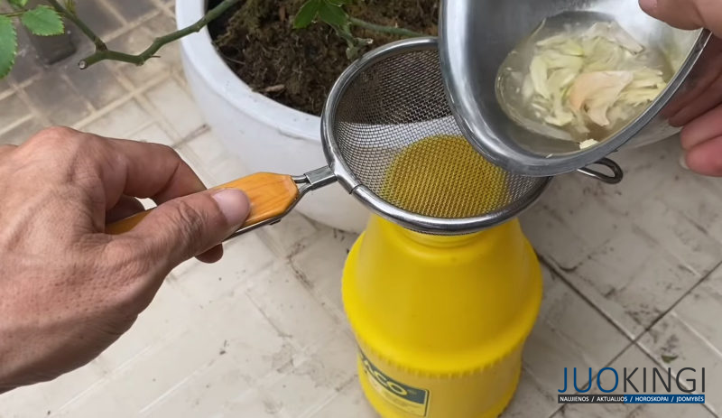 Gydymo metu nepurkškite česnakiniu vandeniu pumpurų ir žydinčių žiedų.