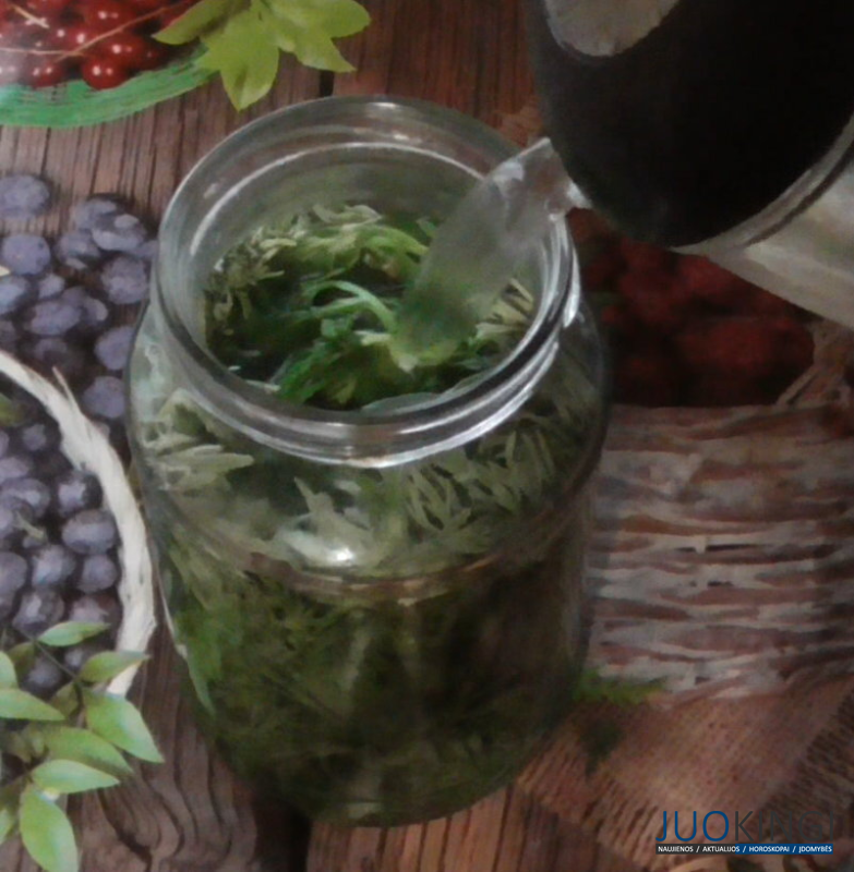 Nuskiname kelias šakeles, užpilame 1 litru karšto vandens ir paliekame prisitraukti 24 valandas. Toliau nukoškite pelyno užpilą ir įpilkite dar 1 litrą švaraus vandens.
