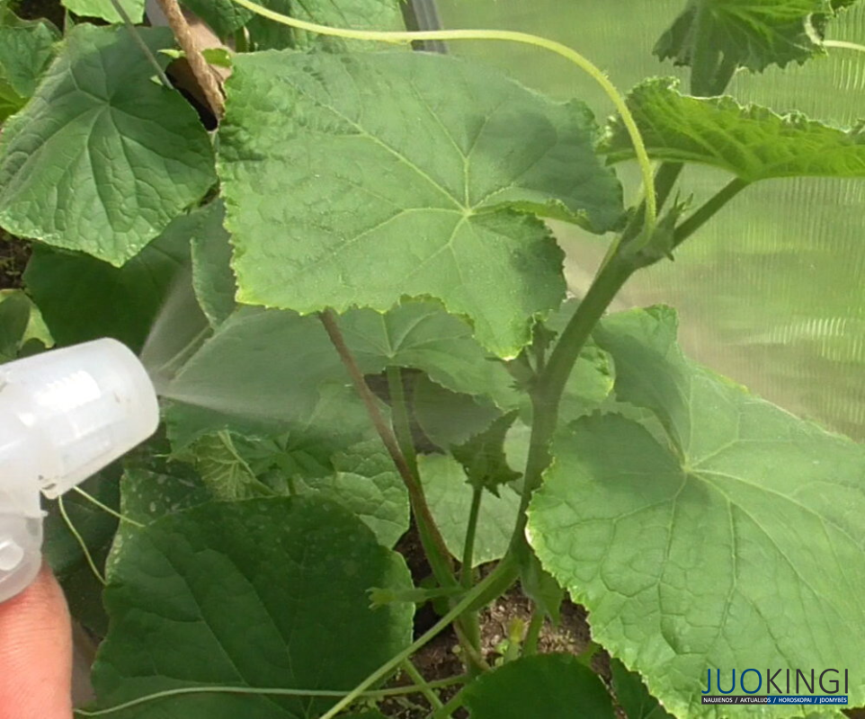 Šiuo užpilu bet kokius augalus purškiame vakare arba anksti ryte sausu, debesuotu oru.