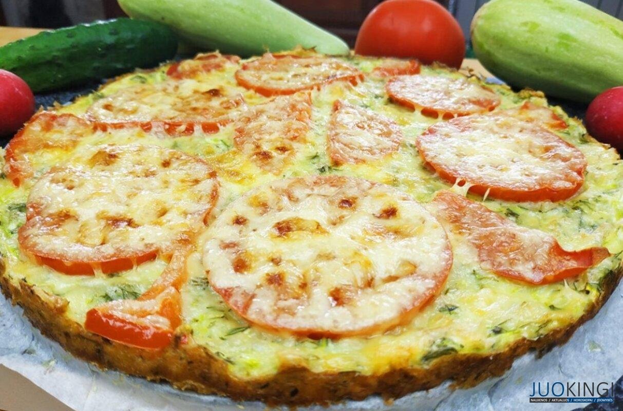 Vienas paprasčiausių ir greičiausių pusryčių receptų: cukinijų pica arba kiaušinių blyneliai su pomidorais ir žolelėmis, nors priedų galite pasigaminti įvairių pagal savo skonį.