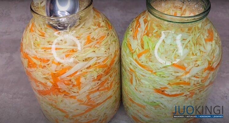 Rauginti kopūstai stiklainiuose. Geriausias receptas: 3 dienos ir paruošta.
