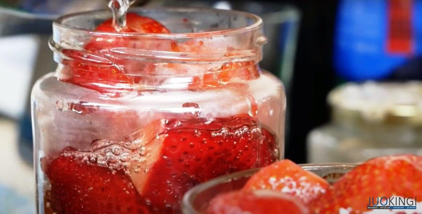 . Sudėkite uogas į stiklainius ir užpilkite karštu sirupu.