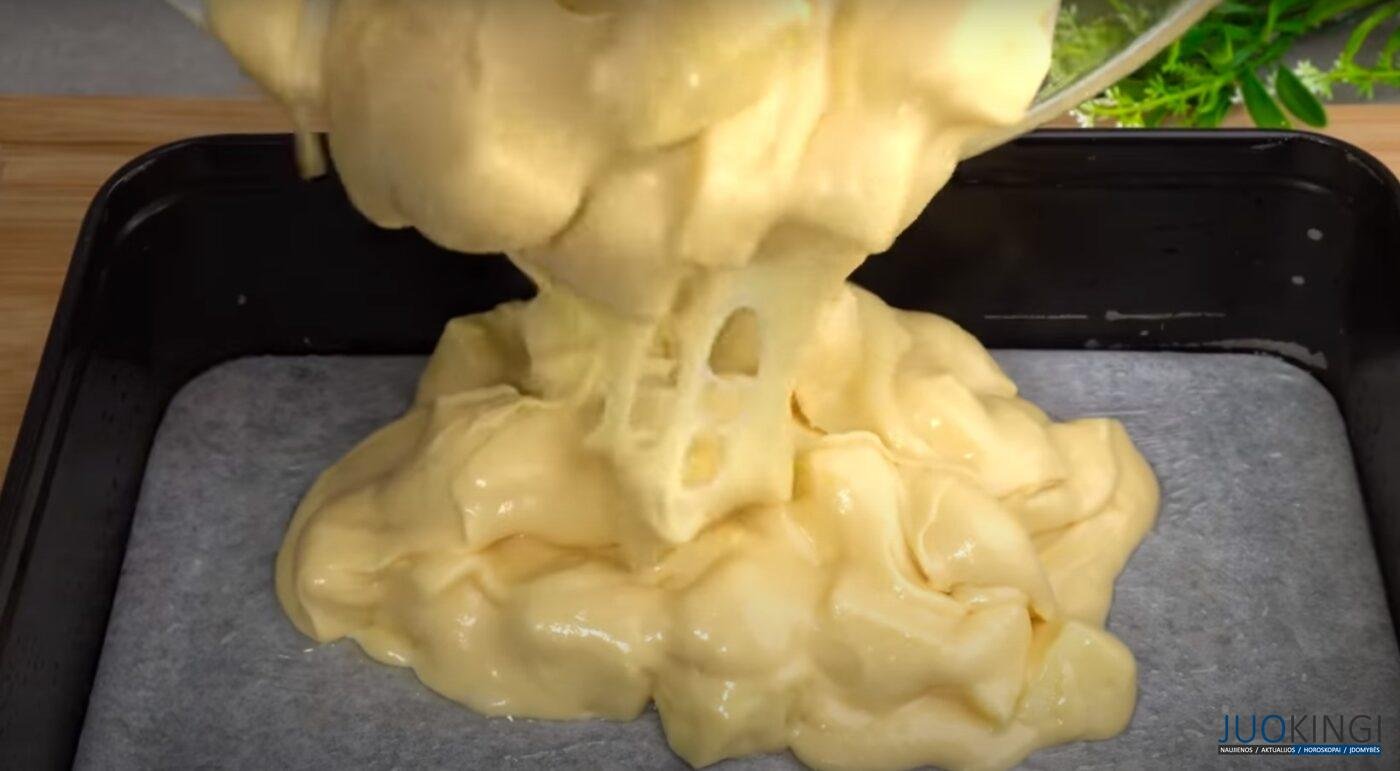 . Miltus perkošiame per sietelį, kad neliktų gumuliukų.