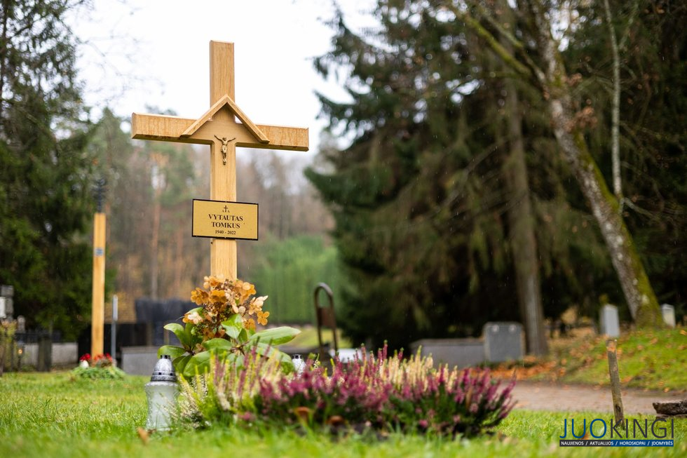 Vytauto Kernagio, Vytauto Šerėno, Arūno Storpirščio, Algirdo-Mykolo Brazausko kapai. Medinis kryželis su rudeninėmis gėlėmis prie neseniai mirusio aktoriaus Vytauto Tomkaus kapo.