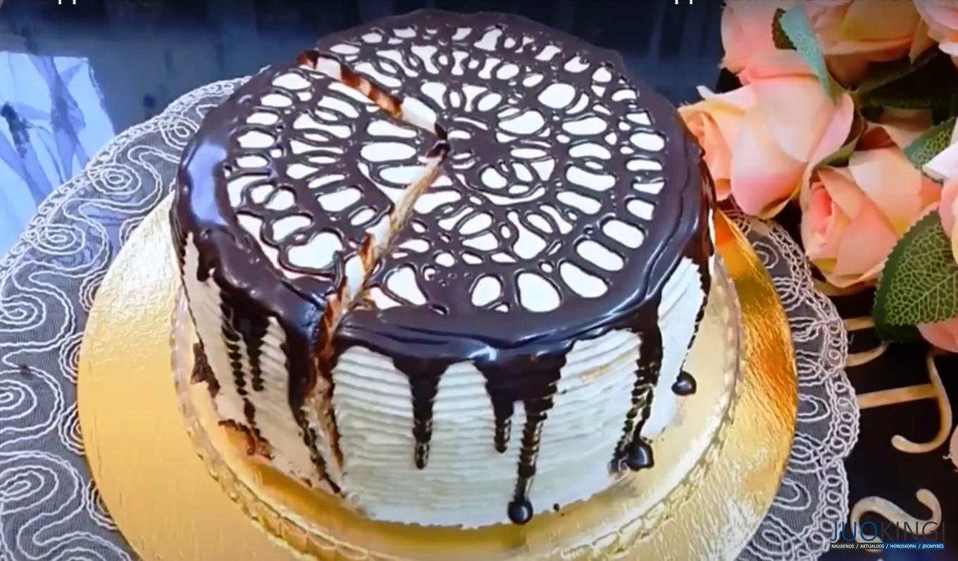 Tortą galima papuošti bet kokiu turimu būdu – šokoladiniu glajumi, kokoso drožlėmis. Tai puikus parduotuvėje pirkto torto pakaitalas.