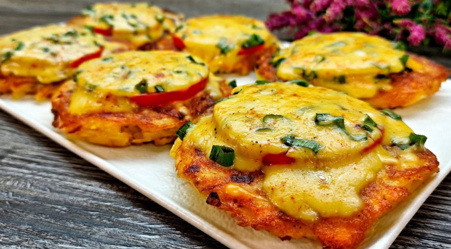 Kol draniki kepa po dangčiu, sutarkuokite sūrį, supjaustykite plonus pomidorų žiedus.