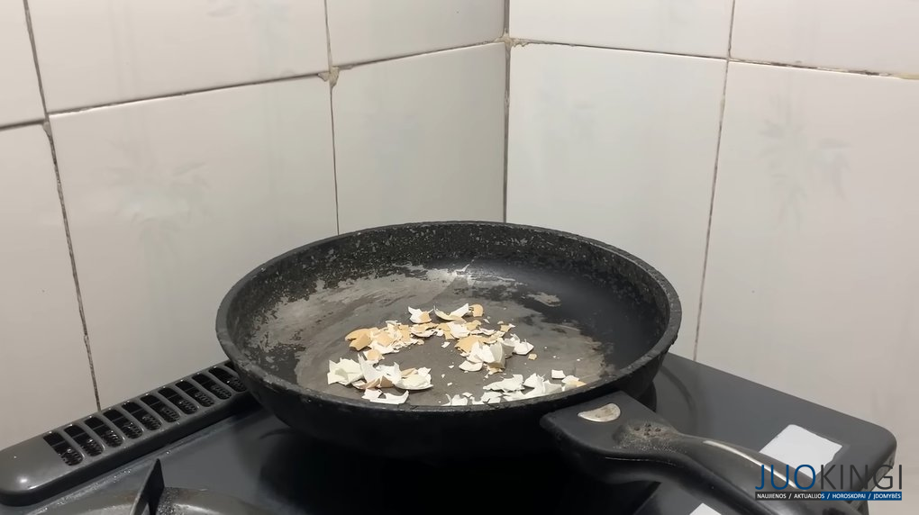 Išdžiovinkite susmulkintus kiaušinių lukštus ant vidutinės ugnies; Tai padės pašalinti visas bakterijas ar grybelius, kurie gali būti ant lukštų.