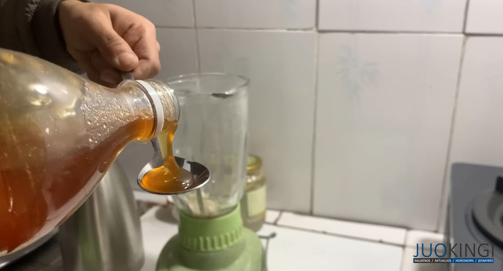 Apdorotus lukštus sudėkite į trintuvą, įpilkite 1 arbatinį šaukštelį medaus ir 2 litrus vandens. Sumaišykite ingredientus ir palikite mišinį užpilti tamsioje vietoje 24 valandas.