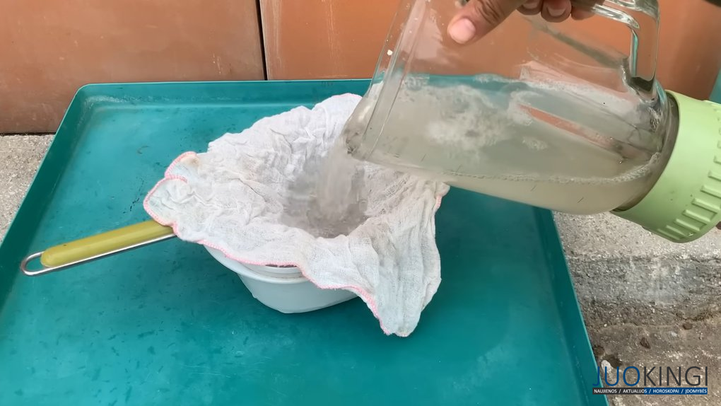 Trąšas perkoškite per smulkų sietelį ir marlę.