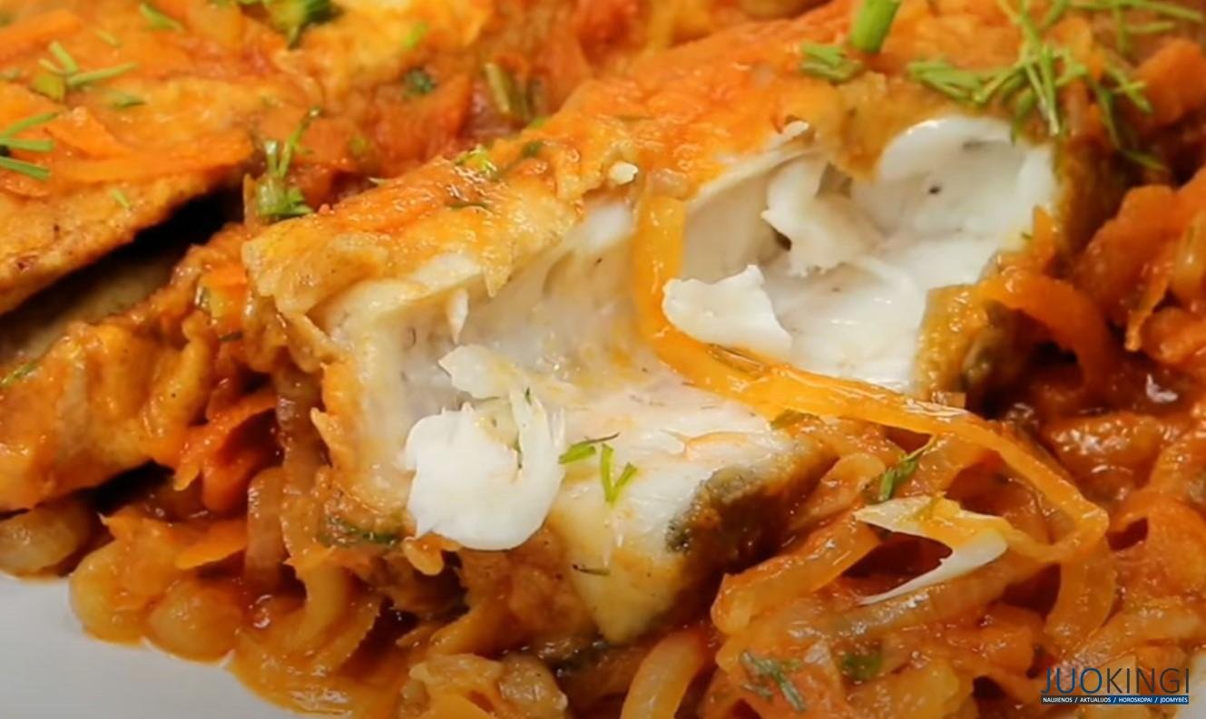 Gausite sultingą troškintą žuvį su daržovėmis. Šį patiekalą galima patiekti kaip pagrindinį patiekalą su bulvių arba grūdų koše.