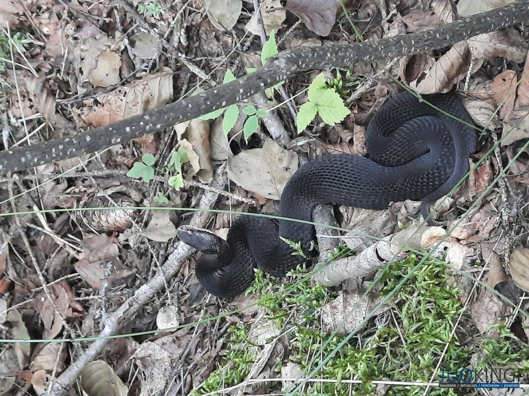 Reda šios Pagramančio girininkijos miškuose sutiktos gyvatės visai neišsigando – dar spėjo ir nufotografuoti susirangiusį miško gyventoją.
