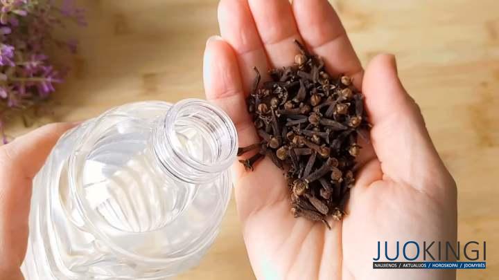 Į purškimo buteliuką supilkite 1 puodelį stalo acto ir įpilkite 3 arbatinius šaukštelius. gvazdikų. Palikite porai valandų.