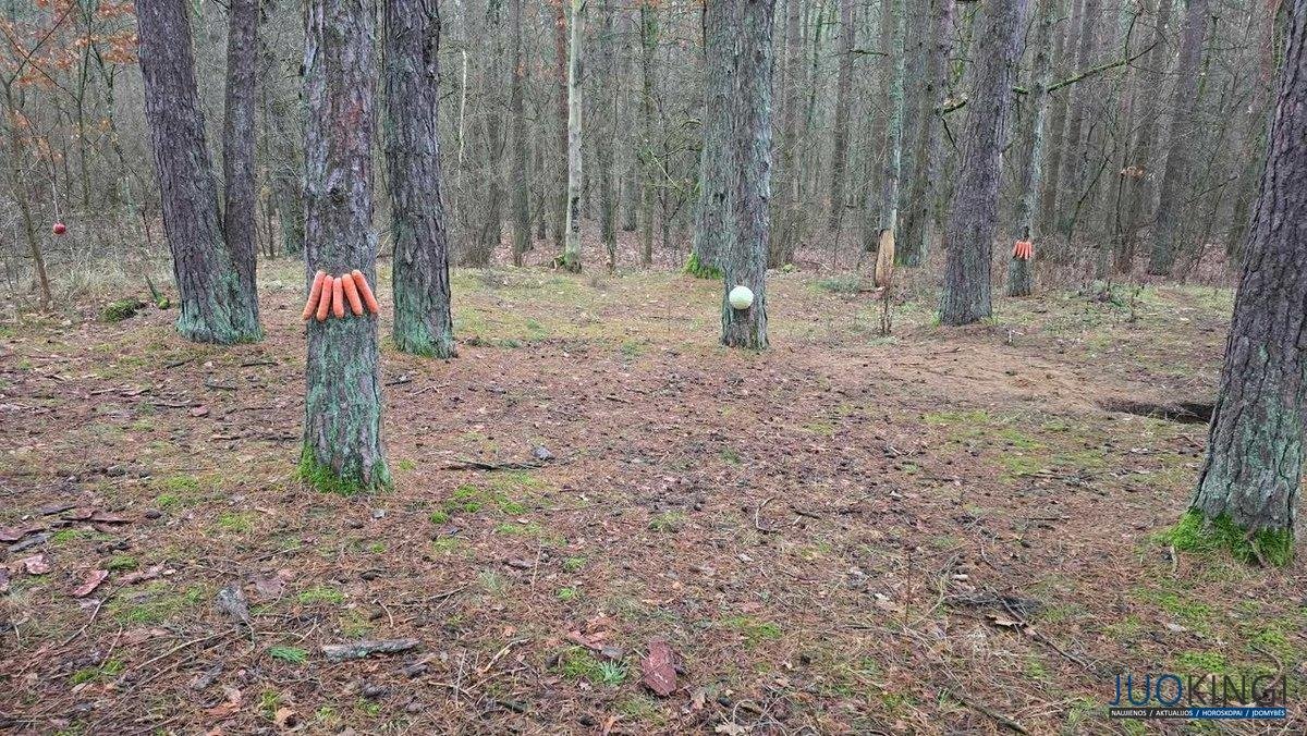 Netikėtos radybos buvo įamžintos: kauniečio atsiųstose nuotraukose matosi skirtingose miško vietose vaikų paliktos daržovės bei vaisiai, jos ne tik kaba ant medžių, jų galima pastebėti ir paliktų ant žemės.