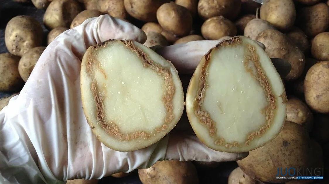 . Rudenį laikoma klastinga bulvių liga žiedinis puvinys. Tuomet pjūvyje pastebėsite, kad bulvės turi juodus žiedus. Liga aktyviai progresuoja, jei laikymo temperatūra pasiekia dvidešimt laipsnių šilumos. Liga žūsta esant – 2 laipsnių temperatūrai.