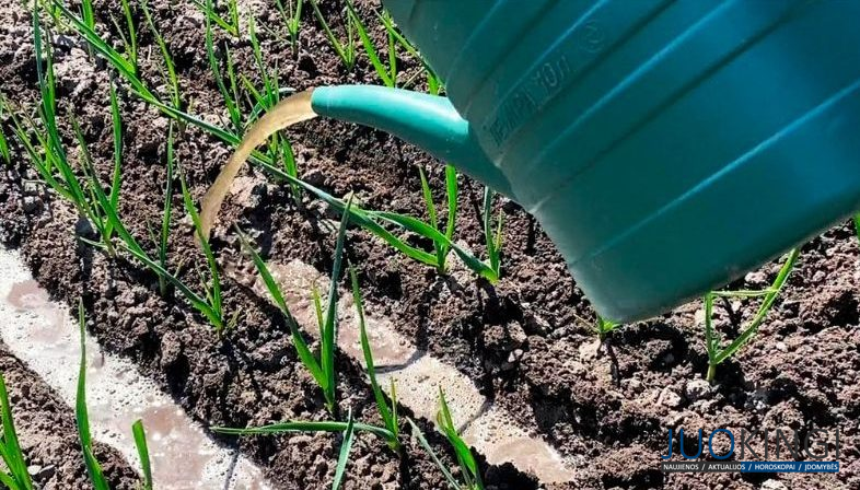 💧 Karbamidas – 1 valgomasis šaukštas. l. 10 litrų vandens (azoto šaltinis).