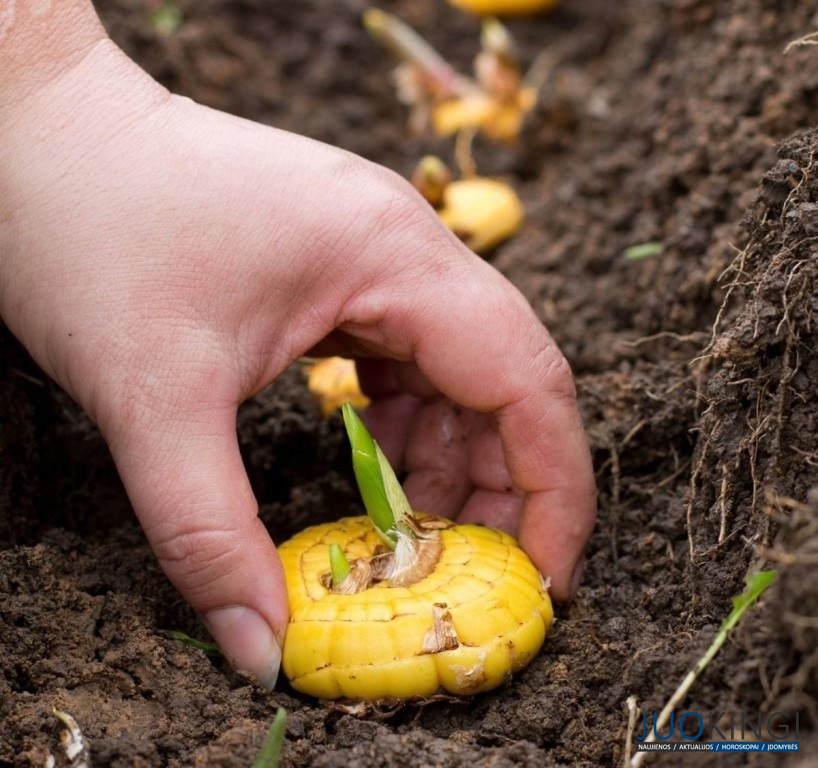 Sodinimo gylis priklauso nuo svogūnėlio dydžio:
