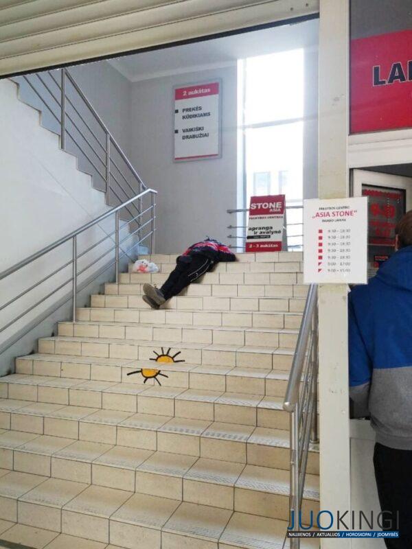 Į „Rinkos aikštės“ žurnalistą kreipėsi kėdainietis Donatas, kuris Kėdainių miesto centre, viename iš prekybos centrų, pamatė ant laiptų gulintį jauną vyrą.