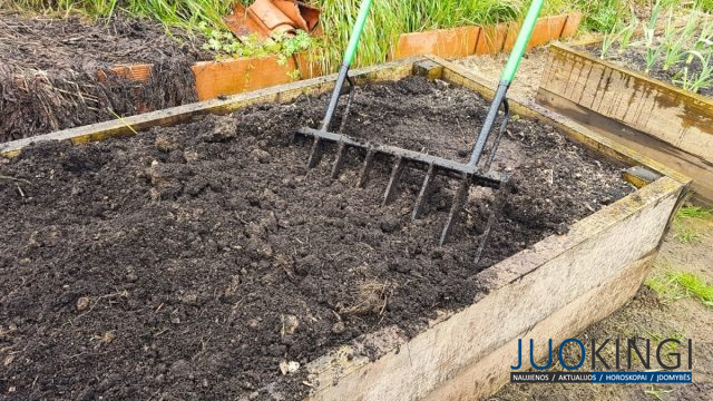 - 2 šaukštus nitrofoskos praskieskite 10 litrų vandens.
