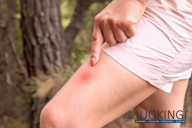 - Plintantis raudonas žiedas aplink įkandimo vietą yra boreliozės požymis.