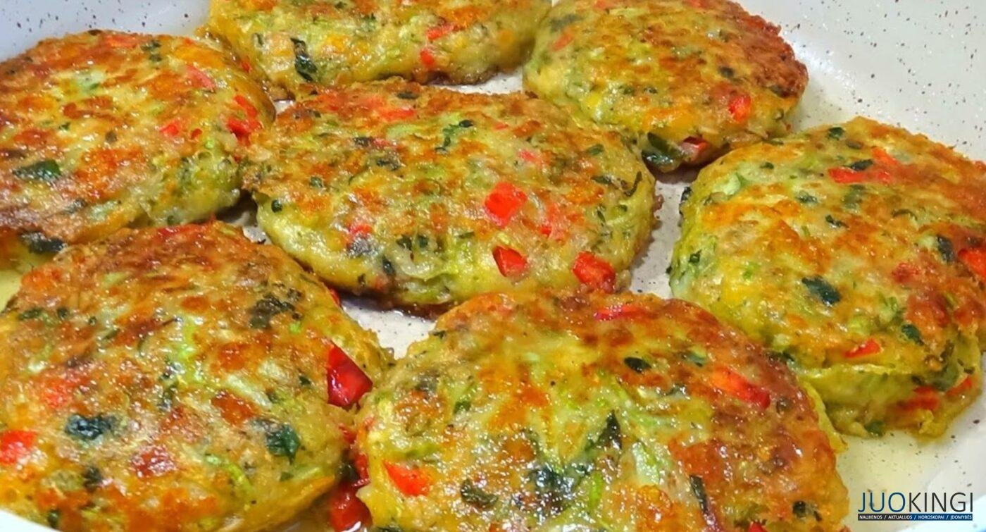 Cukinijų kotletukai su saldžiosiomis paprikomis, sūriu ir avižiniais dribsniais. Pasirodo, labai apetitiška ir soti.