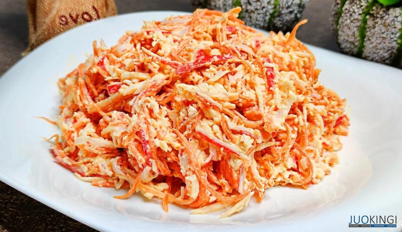 . Salotas pasūdykite, įdėkite porą šaukštų majonezo ir išmaišykite.