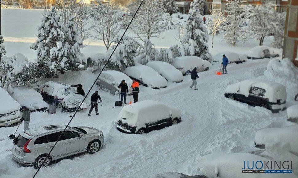 Lietuvą jau kelias dienas kaustantis žiemiškas oras nesitraukia – priešingai, sinoptikai įspėja, kad artimiausią naktį sniego sulauksime dar daugiau. Gausūs krituliai, pustymas ir besiformuojantis plikledis gali dar labiau apsunkinti situaciją tiek miestų gatvėse, tiek užmiesčio keliuose.