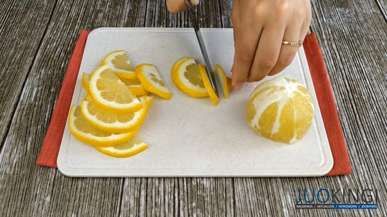 Paimkite vieną didelę citriną ir perpjaukite ją per pusę. Atsargiai nulupkite vieną pusę ir išimkite sėklas. Kitą pusę supjaustykite mažais griežinėliais.