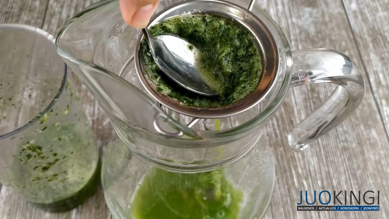 Šią masę perkošiame per sietelį į ąsotį, kad gautume mėtų ir citrinos koncentratą.