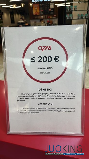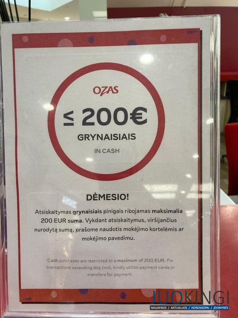 Jie užtikrino, kad atsiskaitymo grynaisiais jame nėra ribojamas ir to neketinama daryti. Esą vienintelė išimtis – „Ozo“ dovanų kortelių įsigijimas.