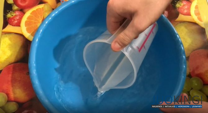 2. Į vandenį įpilkite 1,5 dangtelio audinių minkštiklio.