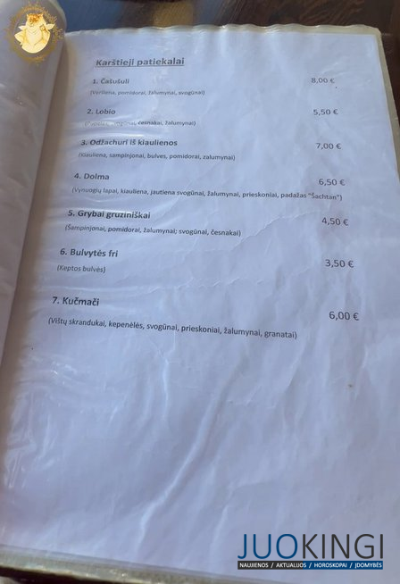 - Chačapuri su sūriu ir žalumynais (9,50 eur) ir su kiauliena ir jautiena (8,50 eur) – Deja, abu chačapuriai buvo nesuvirti, tešla per daug šlapia, o viduje jautėsi per mažai sūrio ir mėsos. Tokios klaidos tikrai negali vykti, kai siūlai tikrus Sakartvelo patiekalus.
