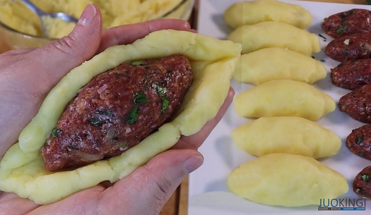 Bulvių zrazai su mėsos įdaru pasirodo labai apetitiški ir sotūs, patiekalas gali būti pilnaverčiai pietūs arba vakarienė.