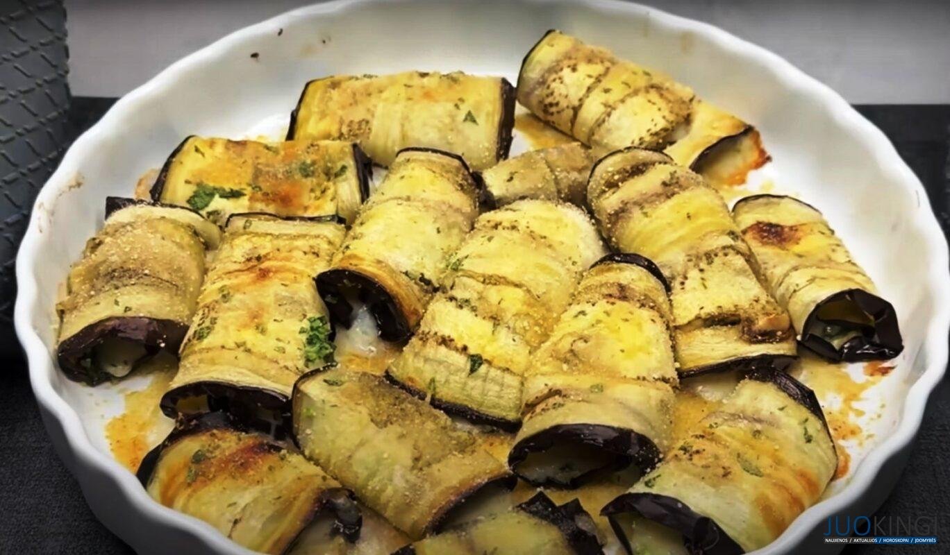 Gausite gardžius minkštus baklažanų suktinukus su sūrio ir česnakų įdaru. Tai geras būdas nustebinti šventės svečius neįprastu patiekalu.