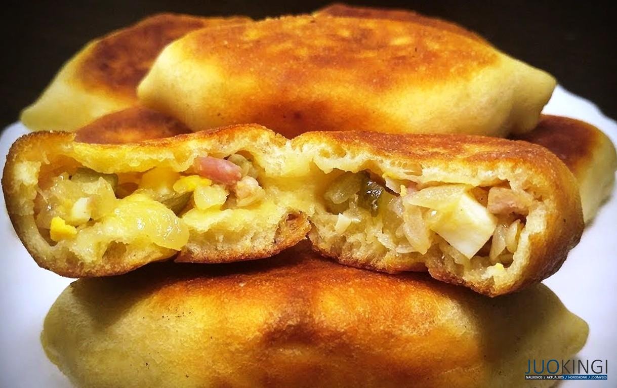 Kefyro tešla yra labai minkšta ir puri, puikiai išlaiko formą, o įdarą galite rinktis kokį tik norite. Aš jį gaminsiu su svogūnų ir mėsos įdaru.