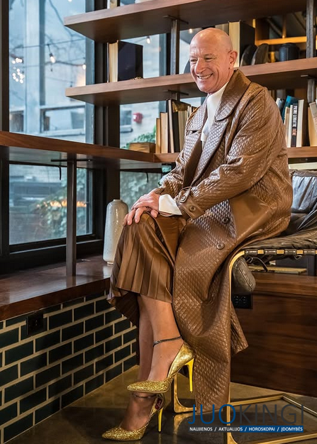 „Pirmą kartą savo stilių pradėjau tyrinėti apsipirkinėdamas su žmona ir ji pasiūlė: „Gal pažiūrėkime į sukneles ir sijonus?“ Po 20 metų su kostiumu ir kaklaraiščiu man pasidarė nuobodu. 2015 m. birželį į biurą pradėjau avėti aukštakulnius su kelnių kostiumais.
