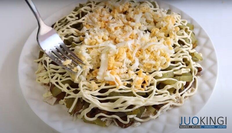 Kaip svečiams pateikti naujas salotas, kurios pranoktų „Olivier“ ar „Silkę po kailiu“? Pasigaminkime paprastas ir gardžias „Paukščio“ salotas.