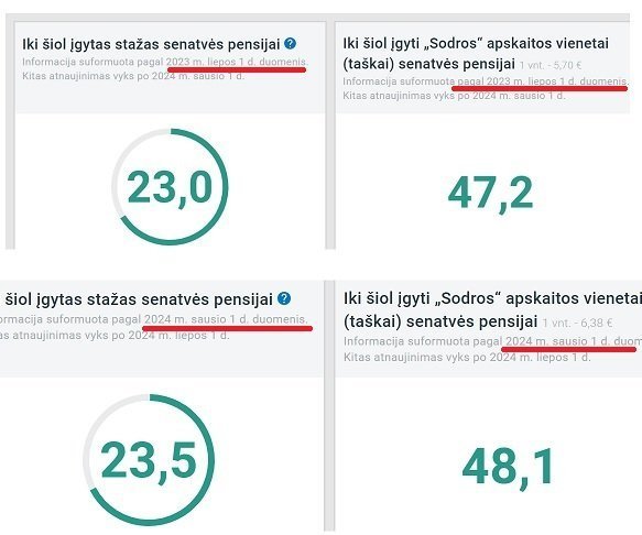 Pavyzdžiui, iki šio sausio 23,5 metų dirbęs žmogus dabar yra sukaupęs 48,1 apskaitos vieneto.