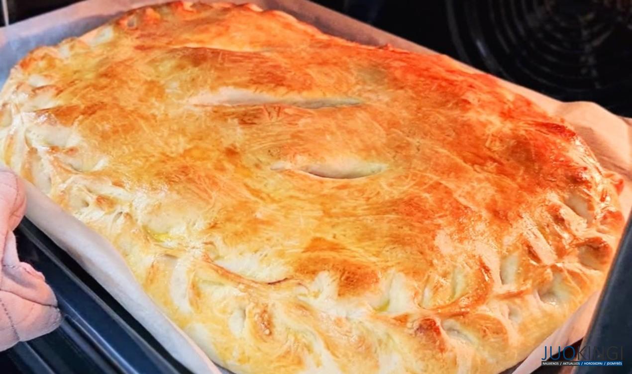 Taip gausime skanų ir nepaprastai sotų nestandartinį pyragą. Patarimas, jei kepant pyragas pradeda degti, ant viršaus uždėkite drėgną pergamentą.