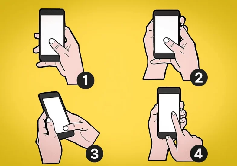 Žmonės, kurie savo telefoną laiko kaire arba dešine ranka ir nykščiu atlieka funkcijas ekrane, yra energingi, ramūs ir pasitikintys savimi. Jie mėgsta rizikuoti, siekia pažangos bet kokia kaina. Savo planus apgalvoja keliais žingsniais į priekį, niekada nesielgia neapgalvotai. Visada priima likimo iššūkius, netinginiauja dirbti dėl savo tikslo.