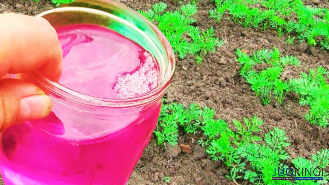 Kalio permanganatas yra tikras gelbėtojas sodininkystės pasaulyje. Šis antiseptikas ne tik skatina augimą, bet ir stiprina augalų imunitetą, todėl jis yra nepakeičiamas asistentas. 1 g miltelių praskieskite 10 litrų vandens, atsargiai perkoškite tirpalą ir laistykite morkas 2–3 kartus per sezoną: iškart po sudygimo, formuojantis šakniavaisiams ir 2 savaites prieš derliaus nuėmimą.