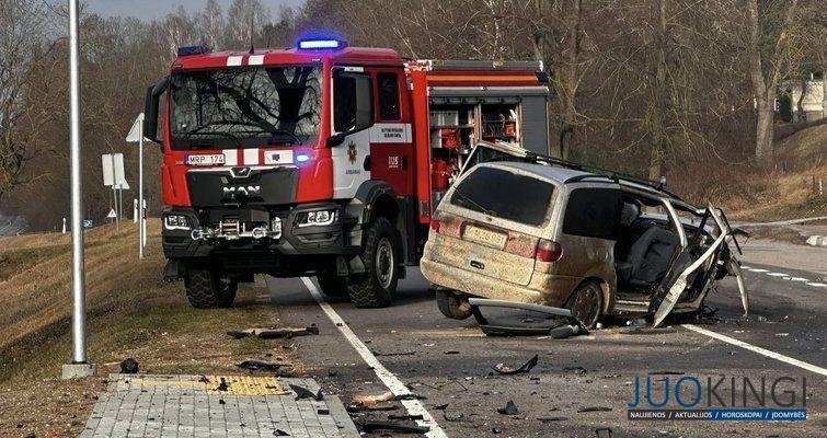 Jurbarko rajone, ties Raudonės miesteliu, penktadienio rytą kaktomuša susidūrė du lengvieji automobiliai, vienas žmogus žuvo, keturi sužaloti, vieno iš jų būklė labai sunki.