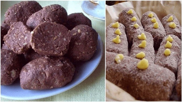 sausainiai buvo susmulkinti į trupinius ir pridėta ištirpinto sviesto su kakava. Viskas buvo sumaišyta ir suformuoti apskritimai.