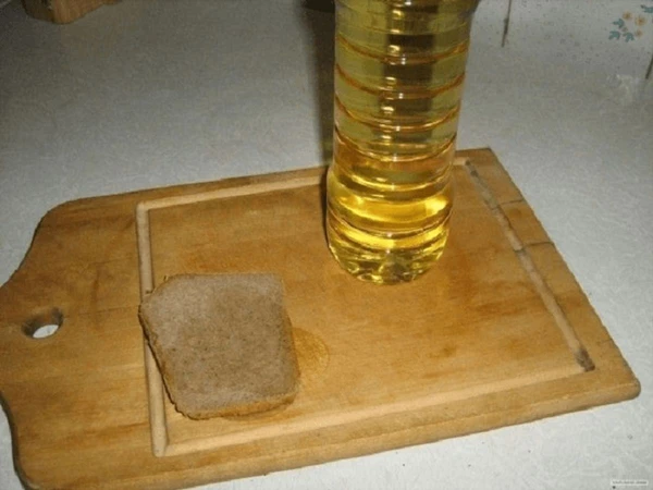 Paimkite riekelę ruginės duonos, sutepkite ją augaliniu aliejumi ir pabarstykite gausiai druska.