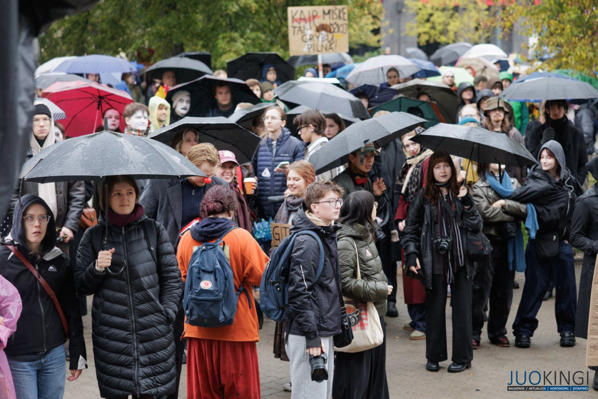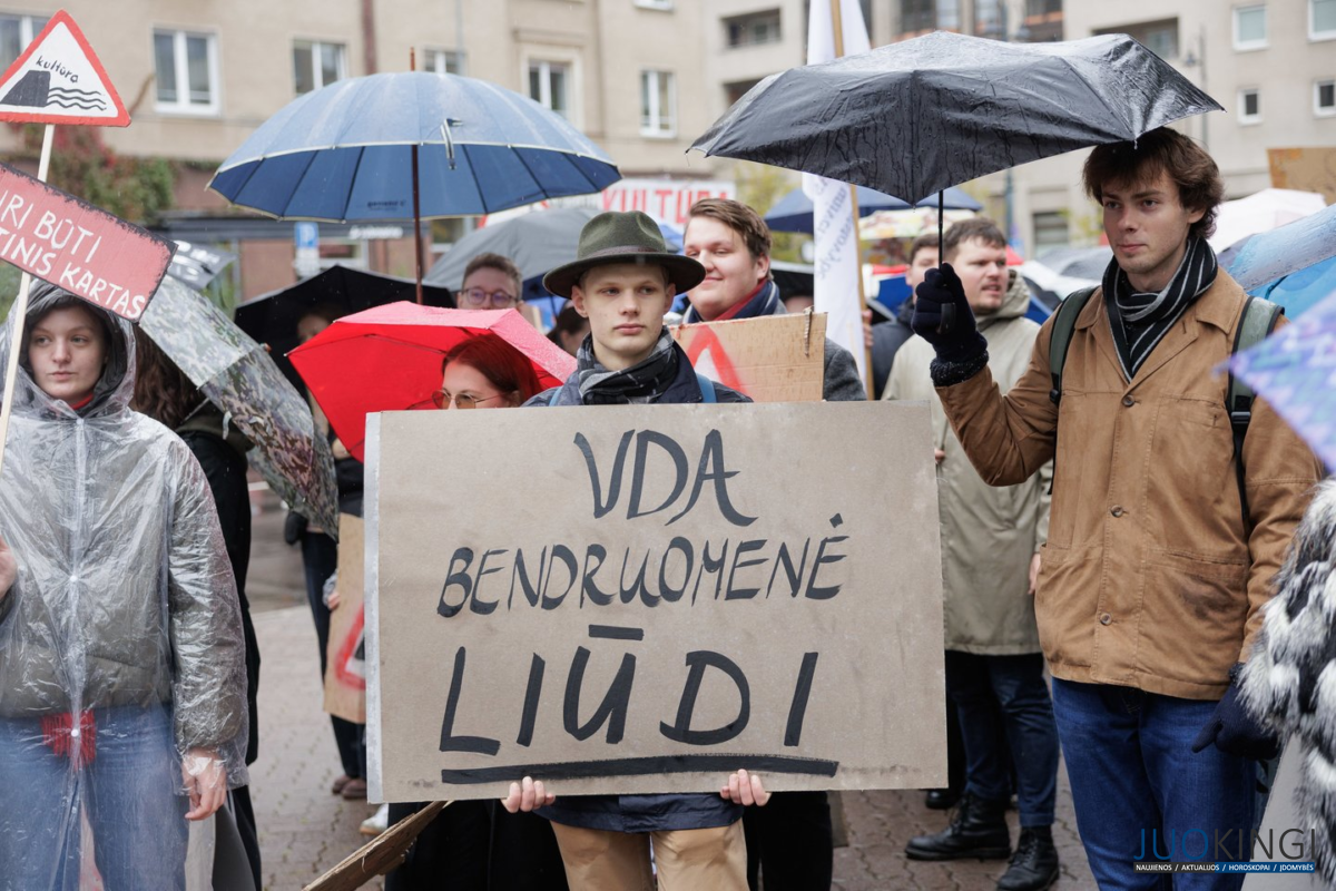Nors pliaupė rudeniškas lietus, protestuotojų neišgąsdino net šlapdriba.