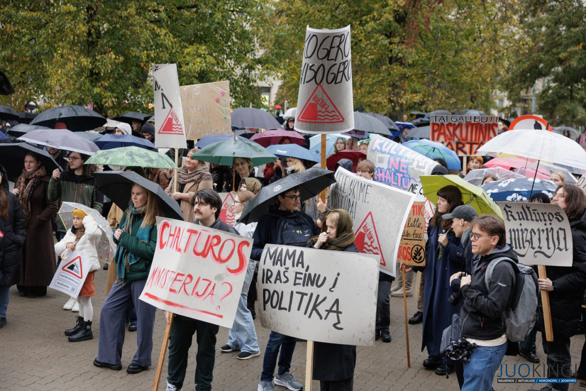Nors pliaupė rudeniškas lietus, protestuotojų neišgąsdino net šlapdriba.